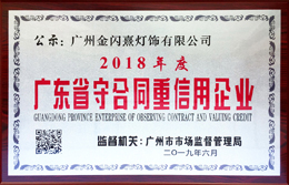 广州金闪熹灯饰有限公司成功获得2018年度广东省“守合同重信用”企业。