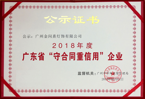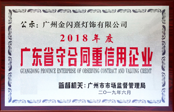 2018年度广东省“守合同重信用”企业-金闪熹